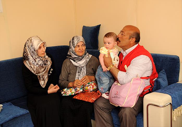 Çiçek ve çeşitli hediyeler verdiği Semiha ve Gülsade Karaduman'ın Anneler Günü'nü kutlayan Bayraktar, Azra bebeğe de hediye ve oyuncaklar verdi.