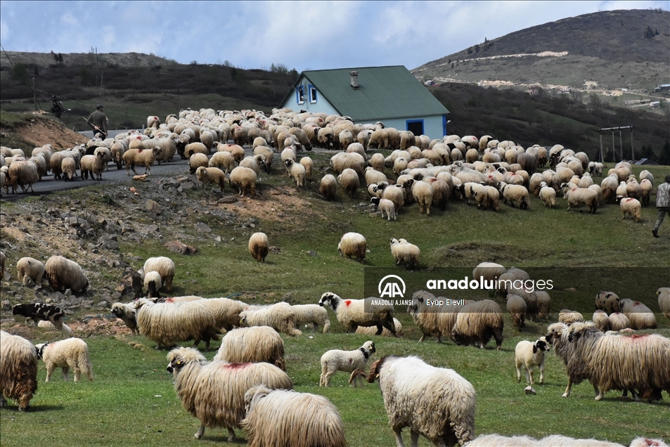 Koyun, koç ve kuzulardan oluşan küçükbaş hayvanlarını yanlarına alan çobanlar, yolda buluşarak birlikte 3 gün süren yayla yolculuğuna başladı.
