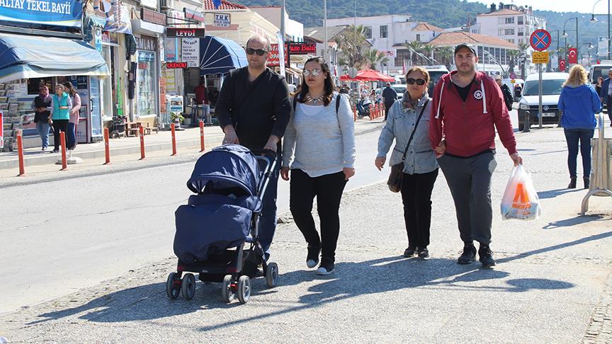 Kuzey Ege'nin turizm merkezlerinden Ayvalık'ta da vatandaşlar, baharın gelmesiyle özellikle deniz kıyısındaki çay bahçelerini ve parkları doldurdu.
