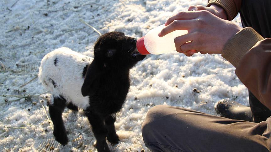 Sütü fazla olan koyunlardan sağdıkları sütü biberonlara dolduran besiciler, sütü yetersiz kuzuları adeta bir bebek gibi besliyor. Verilen şefkat karşısında besicileri anneleri gibi gören kuzular ise zaman zaman kendilerine özenle bakan besicilerinin ardına düşerek pantolonlarının paçasına yapışıyor. Kuzuları soğuk havadan ve hastalıktan korumak için de büyük çaba gösteren besiciler, yorgunluklarını ise dünyaya gelen kuzuları kucaklarına alarak üzerilerinden atıyor.