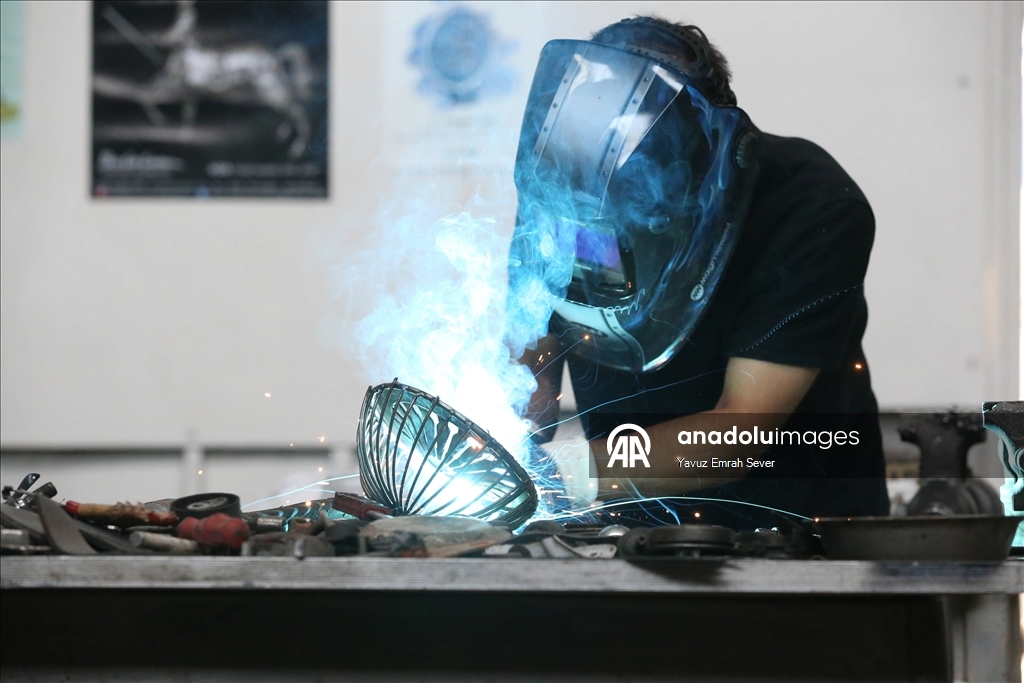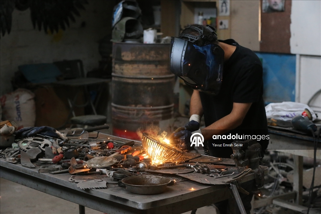 Mücahit Diyar Arız, AA muhabirine, hurda metallerden yaptığı eserlerinde sevdiği konuları çalışmayı tercih ettiğini söyledi.