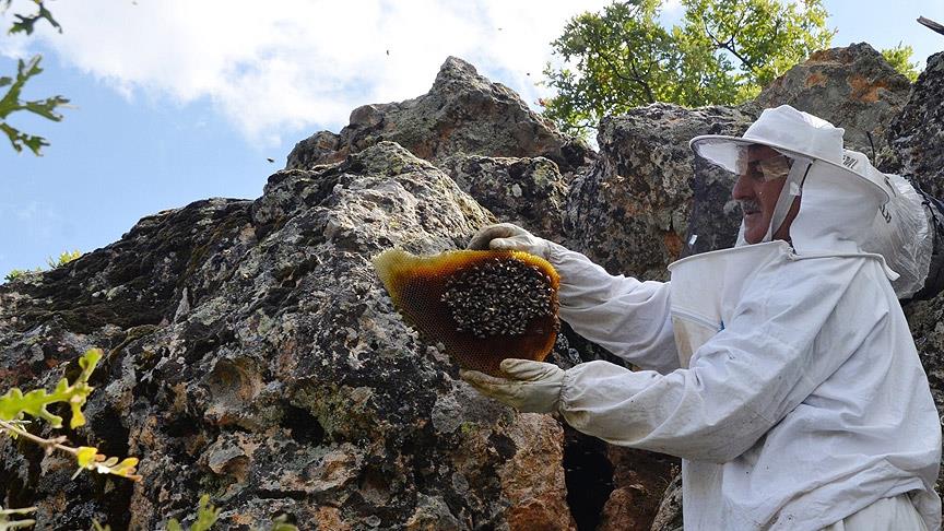 Konya'nın Seydişehir ilçesinde dedesinden öğrendiği yöntemlerle arıcılık yapan Şakir Cırık, geçimini arıların kaya kovuklarına yaptığı balı satarak sağlıyor.