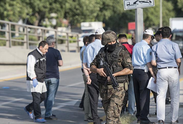 Yaralanan polis memurlarının mesai arkadaşları, araştırma sürerken, olay yeri inceleme ekiplerinden bilgi aldı.