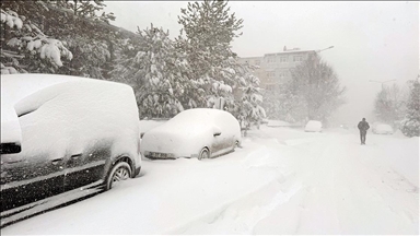 Yağış sonrası beyaza bürünen kale ve çevresi, dronla görüntülendi.