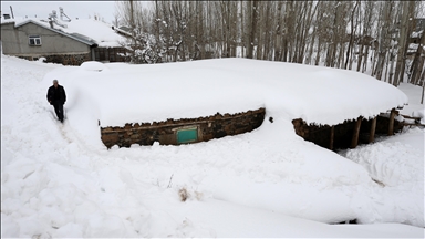 Tarihi İpek Yolu güzergahında bulunan ve 150 bin metrekare üzerinde kurulu kale, ilkbaharda bölgede etkili olan karla kaplandı.