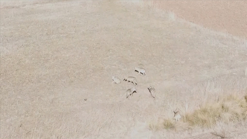 Zengin, tarlalarda sürü halinde gezen ve yiyecek arayan sürünün görüntülerini dron ile kaydetti.