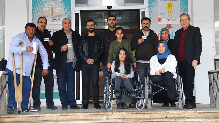 Organ bağışı formu dolduran engellilere, bağış kartları verildi.