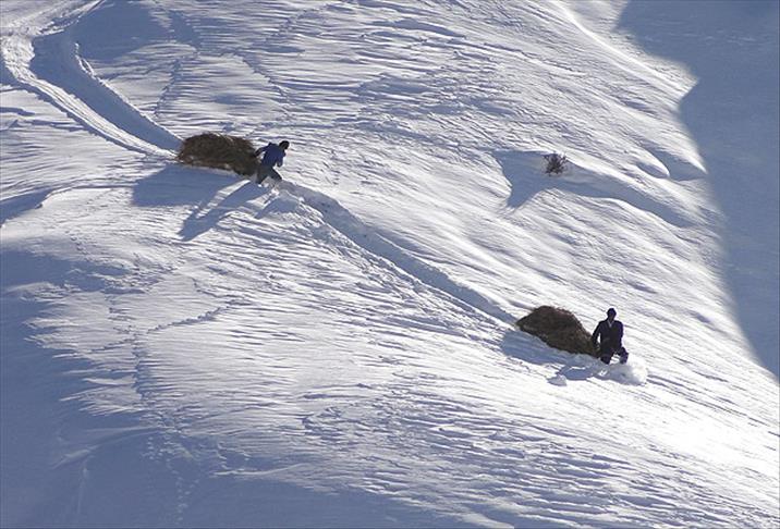 Erciş ilçesine 40 kilometre uzaklıktaki Taşkapı köylüleri, yazın biçtikleri otu, dağ yamaçlarına yığarak hayvanlarının kışlık yemi için hazırlık yapıyor. Kışın yem sıkıntısı yaşandığında ise köyün gençleri, kar üstünde kaydırarak getirdikleri otları ahırlara taşıyıp hayvanları besliyor.