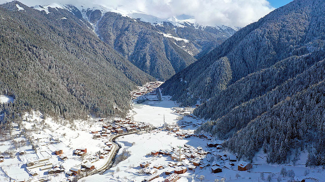Son haftalarda kar yağışının ardından yüzünü gösteren güneşle birlikte bir kısmı buz tutan yüzeyi, beyaza bürünen ormanları ve yöresel mimariyi yansıtan evleriyle ziyaretçilerini karşılayan Uzungöl, gün içinde adeta birkaç mevsimi bir arada yaşama imkanı sunuyor.