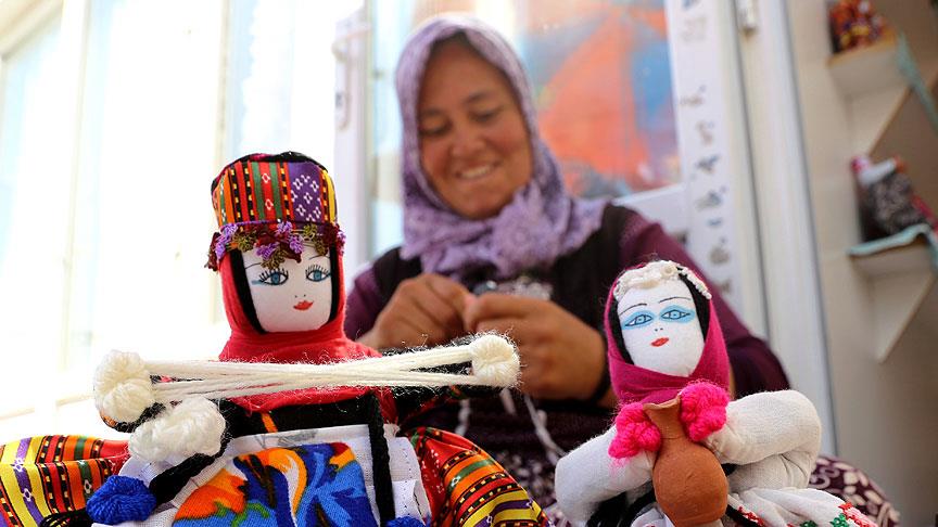 Nevşehir'in Derinkuyu ilçesinde, metal çubuk, kumaş parçaları ve gazoz kapağı kullanarak yaptıkları bez bebekleri turistlere satan kadınlar, aile bütçelerine katkıda bulunuyor.