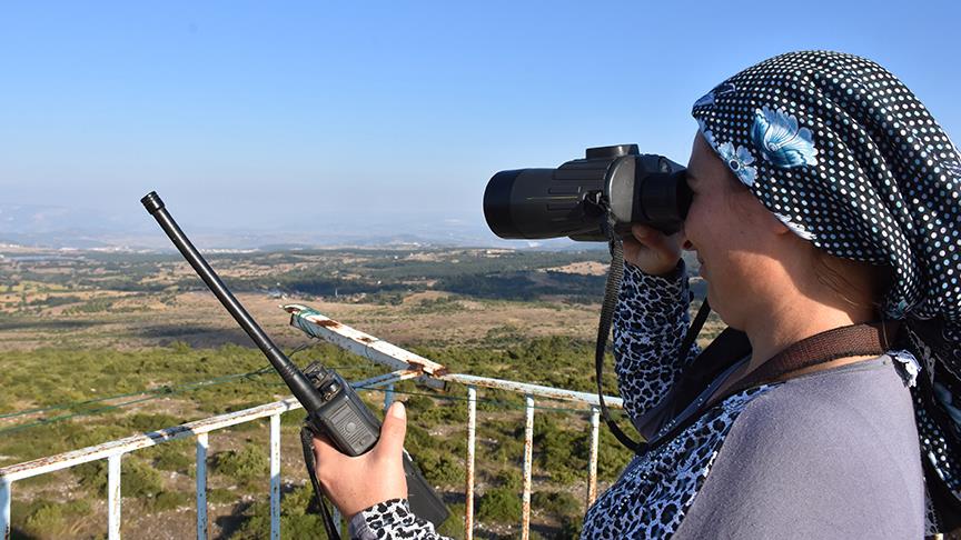72 köyün içinde bulunduğu 100 bin hektar alanı kapsayan sorumluluk sahasını belirli periyotlarla kuleden dürbünle tarayan Ünsal, tehlike anında telsizle durumu ilgililere bildiriyor.