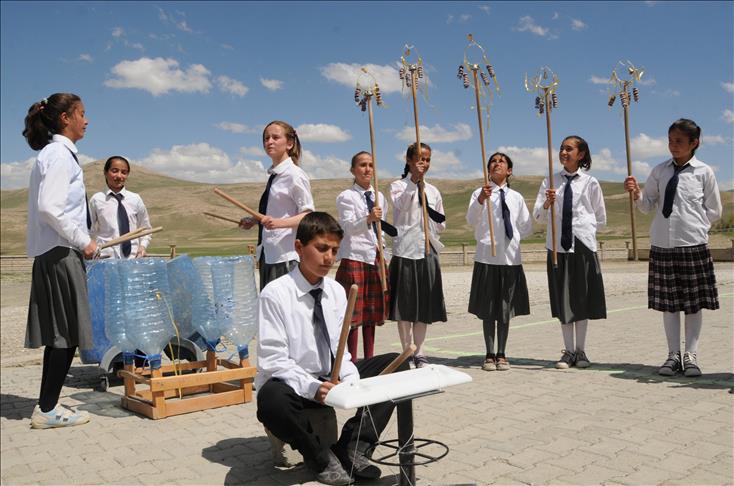 Gürpınar ilçesinde köy ilköğretim okulu öğrencilerinin kurduğu mehteran takımı, gazoz şişesi, soba borusu, lavabo taşı ve su bidonları gibi atık malzemelerden oluşan enstrümanlarla ilk konserlerini verdi.