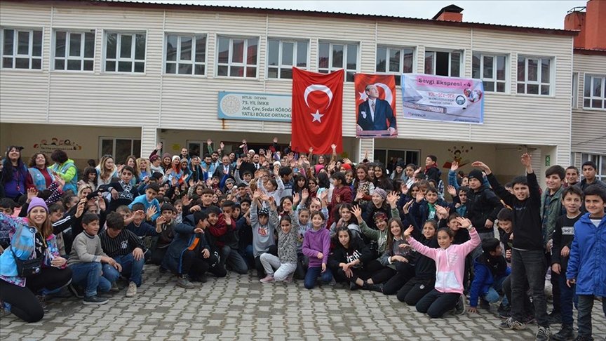 "Sevgi Ekspresi" projesi kapsamında Ankara'dan Van Gölü Ekspresi ile ilçeye gelen Yol-Sev-Der üyeleri, bugün gittikleri 75. Yıl İMKB Jandarma Çavuş Sedat Köroğlu Yatılı Bölge Ortaokulunda etkinlik düzenledi.