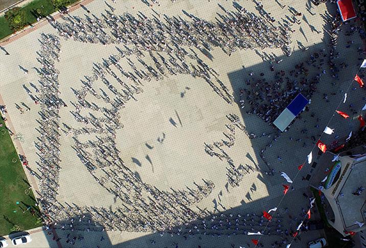 Okul bahçesinde bisikletlerini alan yaklaşık bin öğrenci, bisikletleriyle Türk bayrağı yaptı. Çocuklarla hatıra fotoğrafı çektiren Belediye Başkanı Muhammet Subaşıoğlu, ortaya çıkan görüntünün çok anlamlı olduğunu belirterek "Bu projemiz 5 bin öğrencimizle sınırlı kalmayacak. Her yıl bisiklet hediyemiz olacak" ifadelerini kullandı.