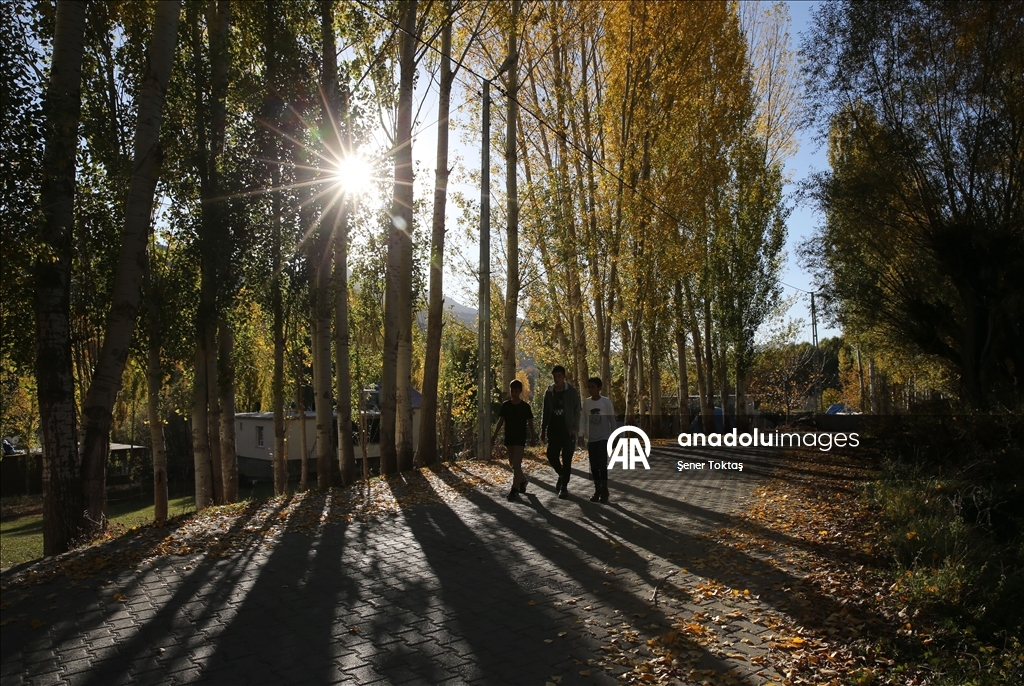 Bitlis'te doğal güzelliklerin bulunduğu alanlar ile Van Gölü kıyıları sonbahar renkleriyle farklı bir güzelliğe büründü.