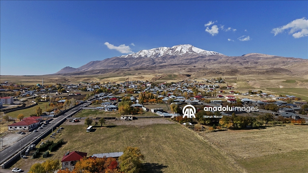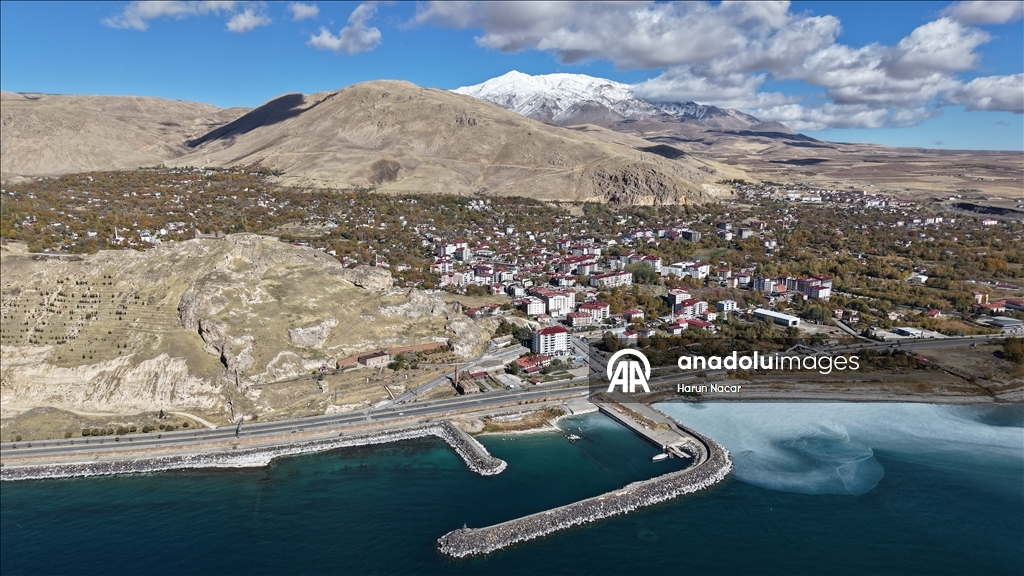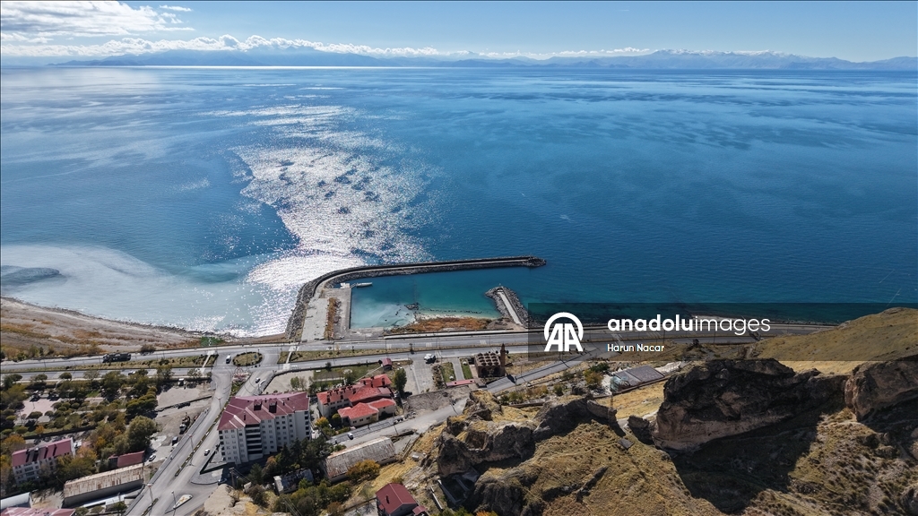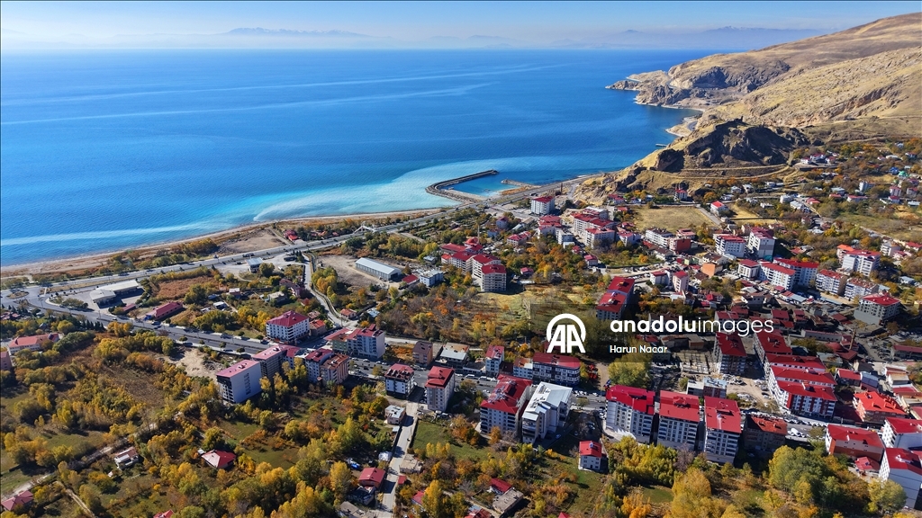 Adilcevaz ilçesinde de sonbahar renklerine bürünen alanlar ile Van Gölü kıyıları dronla görüntülendi.