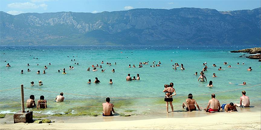 Marmaris'in Çamlı köyünde bulunan Sedir Adası'ndaki Kleopatra Plajı, adeta ziyaretçi akınına uğruyor.***