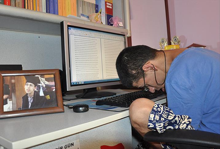 Aydın'ın Efeler ilçesinde yaşayan, "serebral palsi" hastalığı nedeniyle ellerini ve ayaklarını kullanamayan Mustafa Erol, burnuyla kullandığı bilgisayarda, engellilerin toplumsal hayatta yaşadığı sıkıntıları anlatan kitap yazmayı başardı.