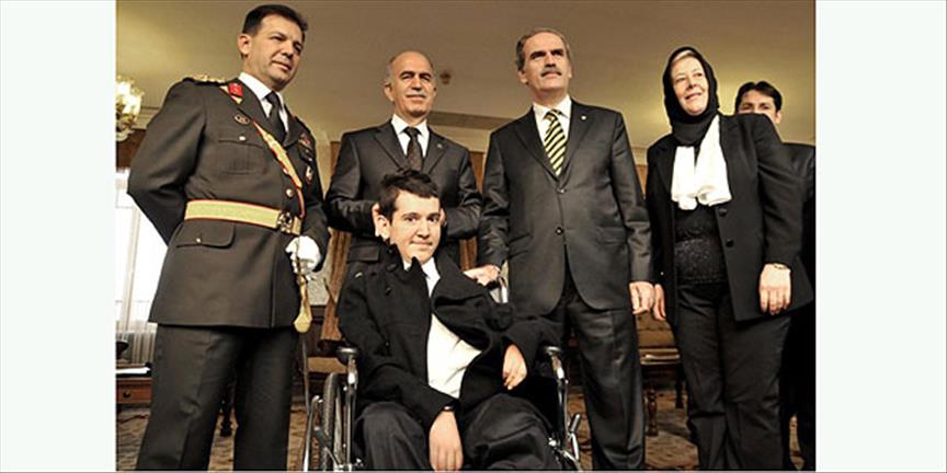 Cumhuriyetin 88. yıl dönümü dolayısıyla Bursa'da düzenlenen kabule tekerlekli sandalyesiyle gelen engelli Can Ahmet Vural ilgi odağı oldu.***