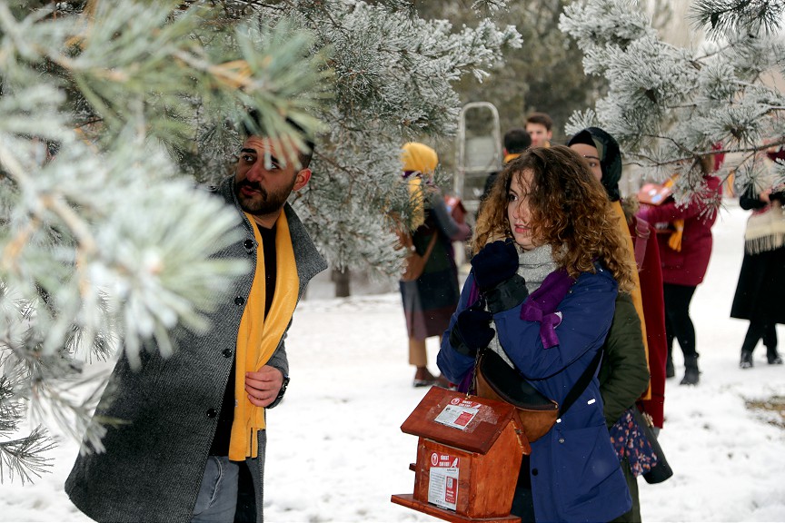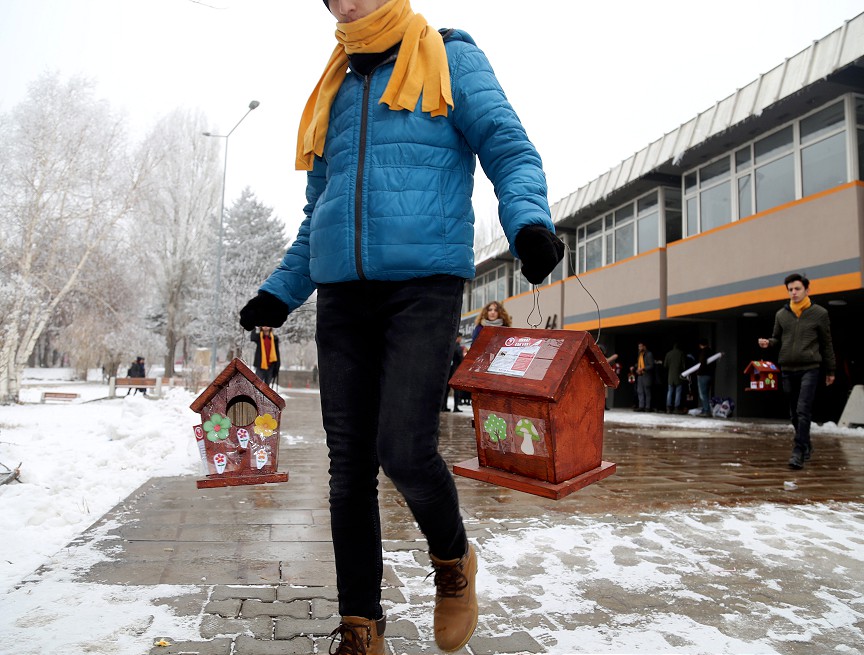 Bu yıl da iyilik hareketine devam eden öğrenciler, Erzurum'da, kara kış etkisini göstermeden önce bir araya gelip nesli tükenmekte olan hayvanların adını verdikleri 25 kuş evi yaptı. Öğrenciler, üzerinde kuşlara ilişkin bilgi notlarının da yer aldığı kuş evlerini merdiven yardımıyla üniversite yerleşkesindeki ağaçlara astı.