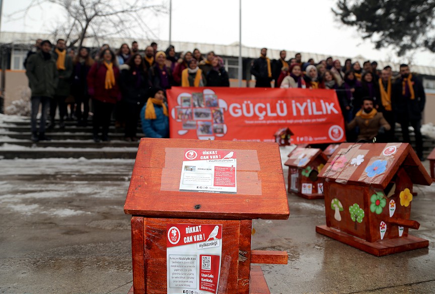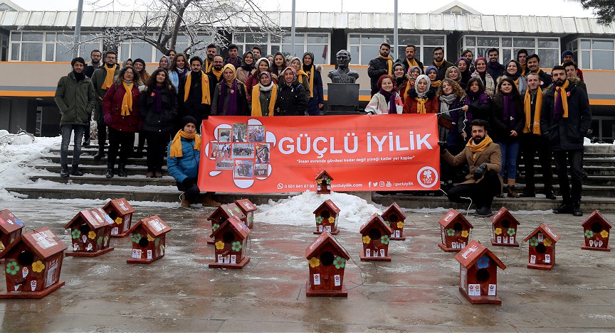 Türkiye'de kışın dondurucu soğukların yaşandığı Erzurum'da, kuşların soğuk hava ve açlıktan ölmemesi amacıyla bir araya gelen 100 kişilik "Güçlü İyilik Platformu" üyeleri, ahşaptan ürettikleri kuş yuvalarını ağaçlara asıp hem kuşları hem yürekleri ısıttı.