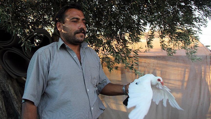 Kilis sınırı karşısındaki Halep'in Azez ilçesinde çadırda yaşayan Suriyeli, zeytin bahçesinde baktığı kuşlarını satarak geçimini sağlıyor.