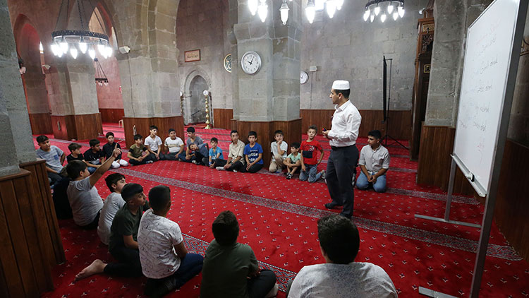 Bitlis'teki tarihi Ulu Cami'de görevli imam Muhammet Ece, düzenlediği etkinliklerle yaz Kur'an kursunu daha eğlenceli hale getirerek çocukların derslere devamlılıklarını artırdı.