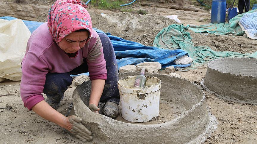 Dağ yamaçlarından toplanan killi toprağı alan kadınlar, önce bunu samanla karıştırarak uzun süre yoğuruyor, güneşli hava beklenerek elde edilen çamur ile tandır yapımına başlanıyor.