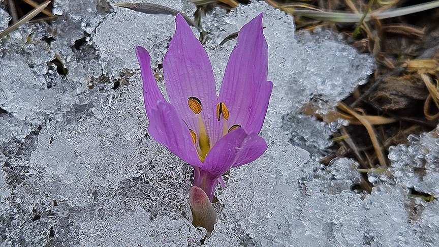 Çankırı'nın Yapraklı ilçesinde, karların erimesiyle araziler, katır çiğdemi veya bilimsel adıyla Colchicum szovitsii olarak da bilinen kar çiçekleriyle renklendi.