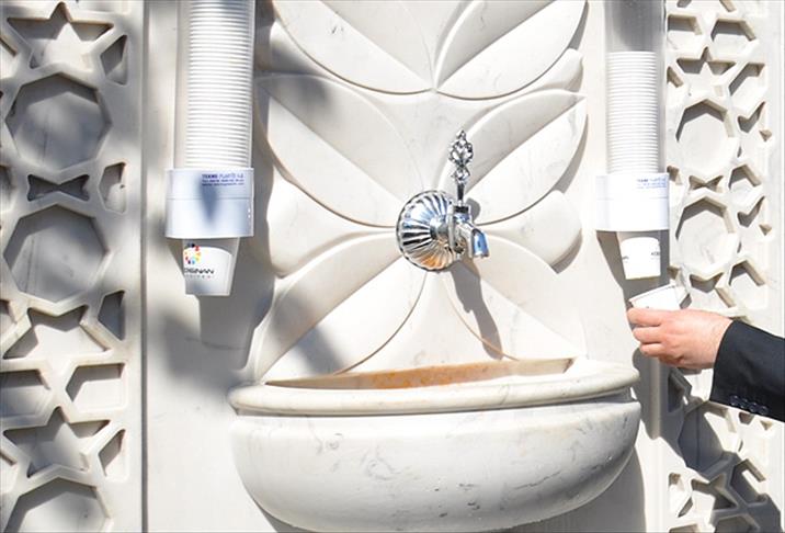 Kayseri'nin merkez Kocasinan ilçesinde, belediye tarafından yaptırılan "İkram Çeşmesi"nden, vatandaşlara ücretsiz çorba dağıtılmaya başlandı.