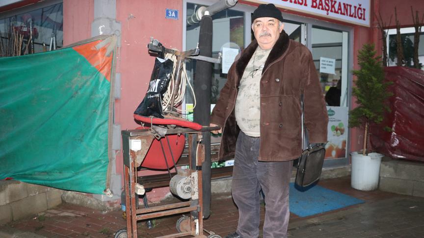 Zonguldak'ın Çaycuma ilçesinde, çocukken geçirdiği kaza sonucunda sol el parmak uçlarını kaybeden Recep Acar, kendi yaptığı çarkıyla 26 yıldır geçimini sağladığı bileyiciliği aynı köşede sürdürüyor.
