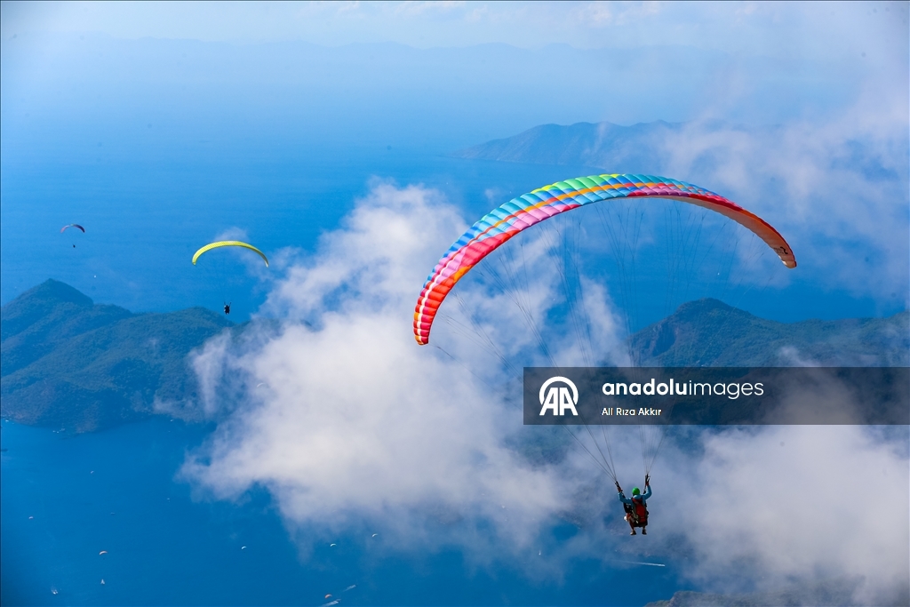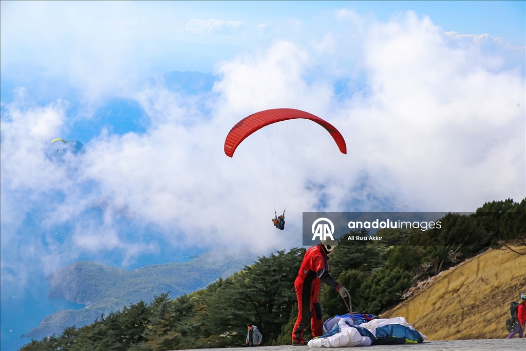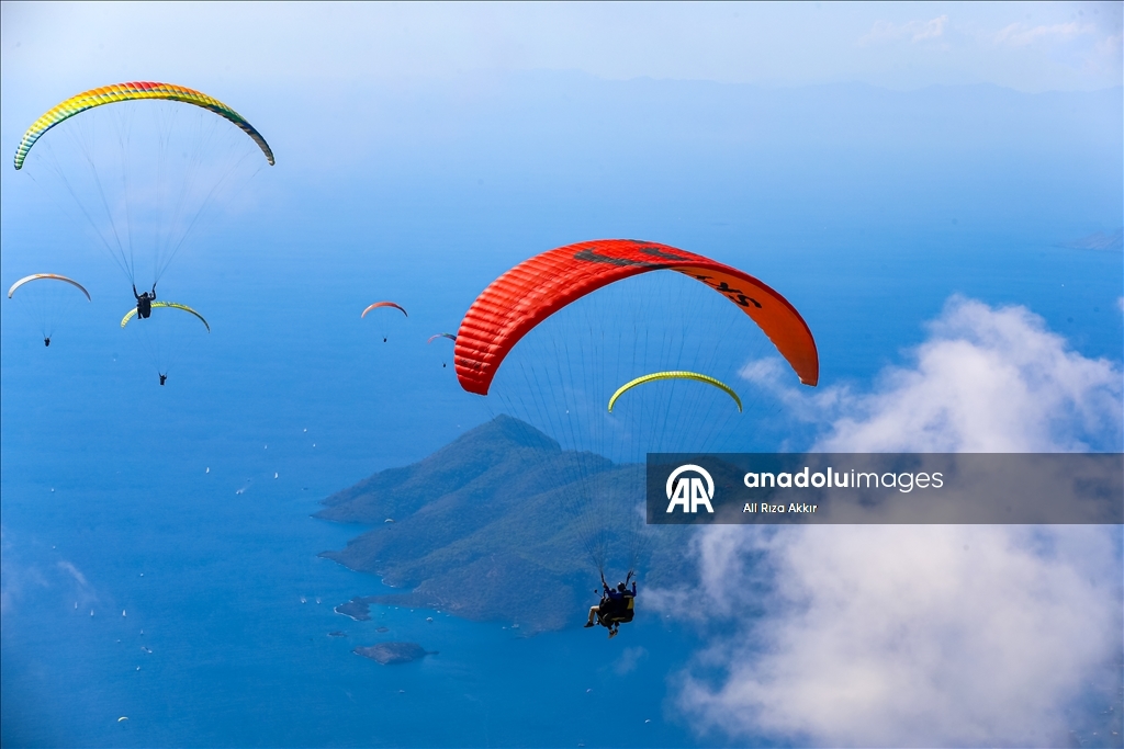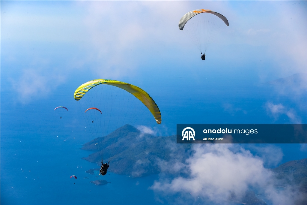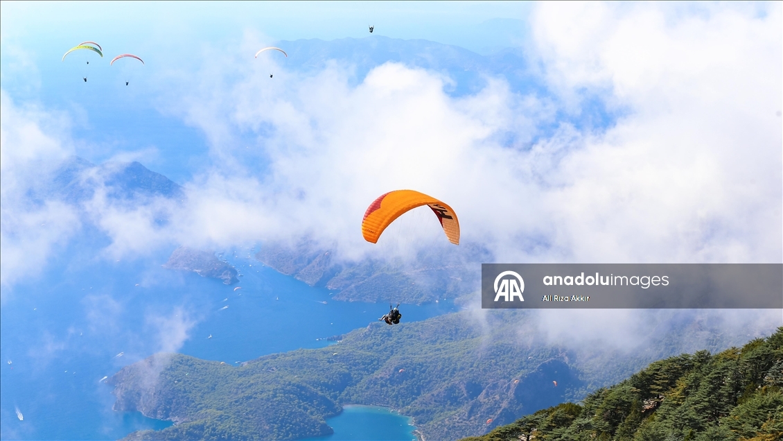 Çinli turistler, ülkelerinin kuruluş yıl dönümü dolayısıyla çıktıkları tatilde Muğla'nın Fethiye ilçesindeki yamaç paraşütü merkezi Babadağ'da yoğunluk oluşturdu.