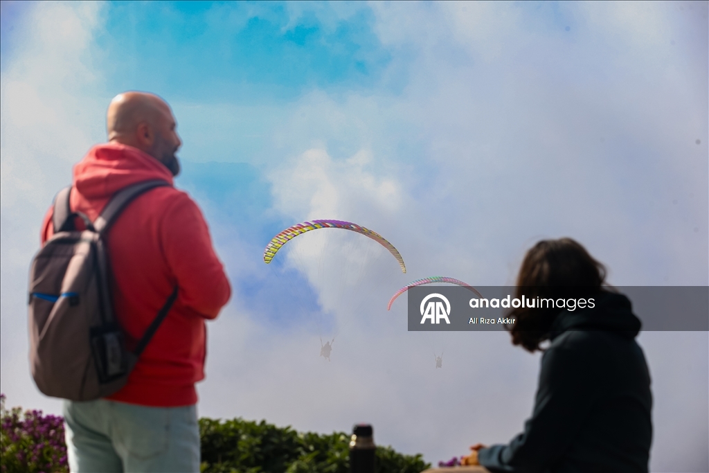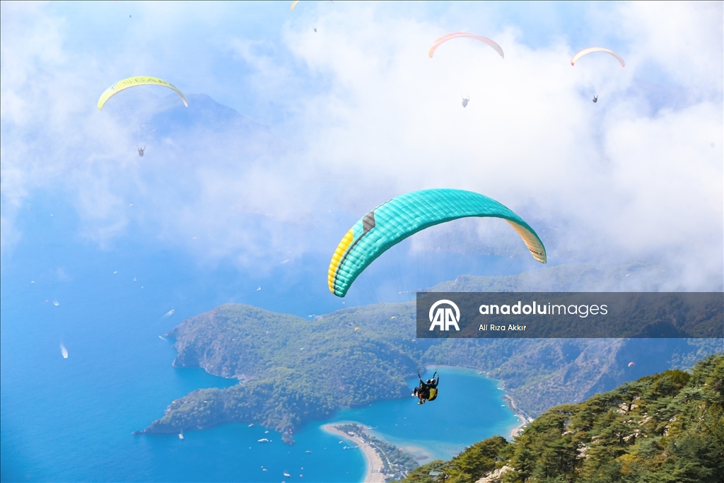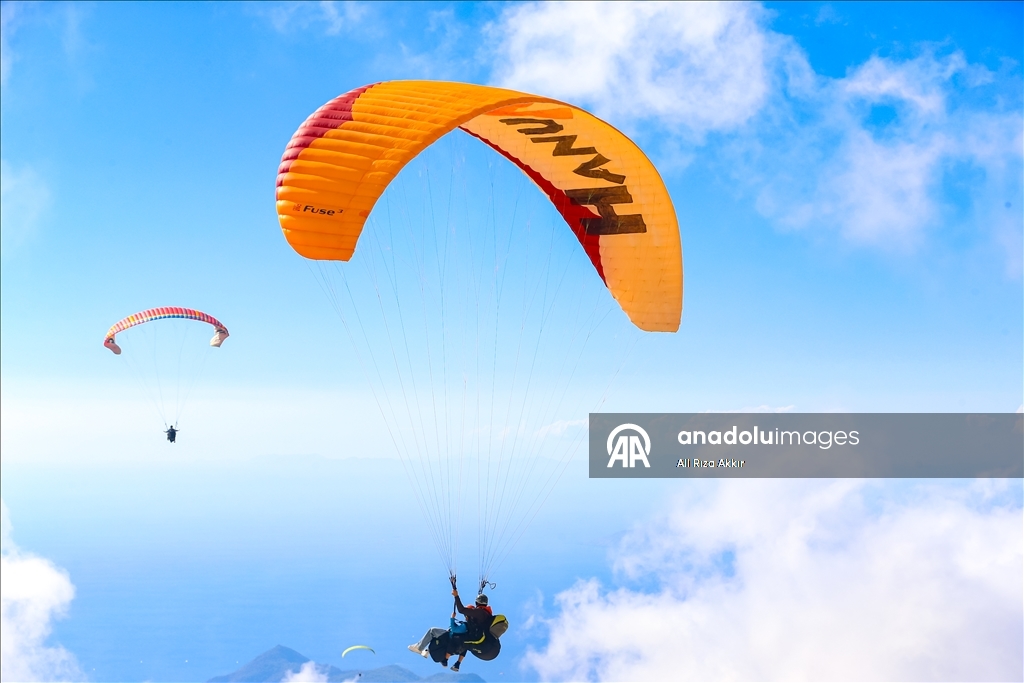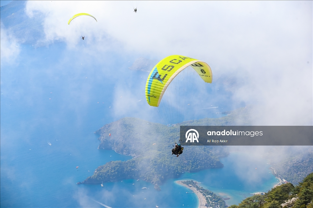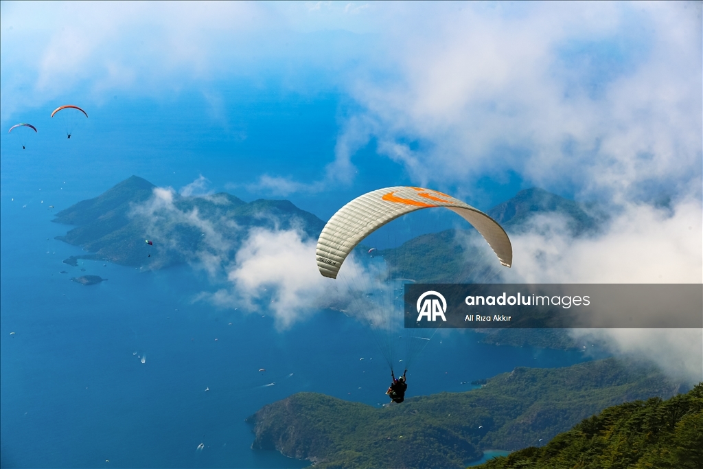 Çinli turistler, ülkelerinin kuruluş yıl dönümü dolayısıyla çıktıkları tatilde Muğla'nın Fethiye ilçesindeki yamaç paraşütü merkezi Babadağ'da yoğunluk oluşturdu.