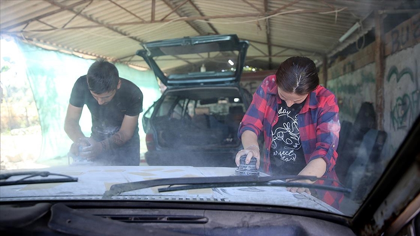 Muğla'nın Seydikemer ilçesinde yaşayan Fatma Karadere, eşini ziyaretleri sırasında merak sardığı kaportacılığı öğrendi.