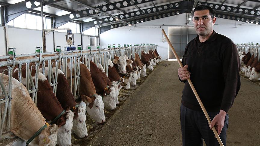 Sivas'ın Zara ilçesinde Tarım ve Kırsal Kalkınmayı Destekleme Kurumundan (TKDK) aldığı hibeyle büyükbaş hayvan çiftliği kuran 20 yıllık çoban Sedat Arslan, işinin patronu oldu.