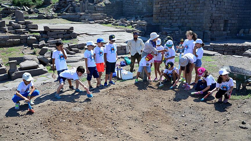 Çanakkale'de, yaşları 7 ile 15 arasında değişen bir grup öğrenci, Assos Antik Kenti'ndeki simülasyon alanında uygulama yaparak arkeologluğu anlamaya çalıştı.