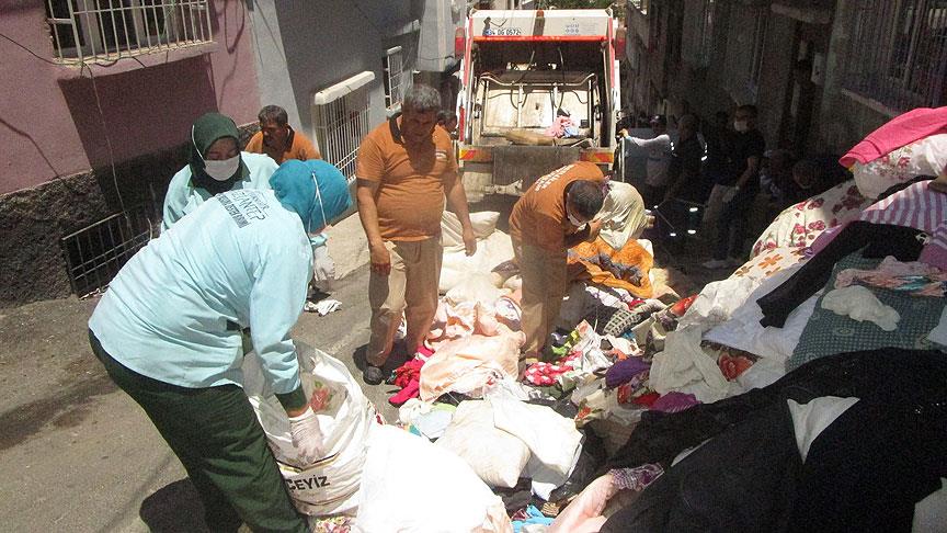 Gaziantep'te engelli bir kadının eşi ve 2 çocuğuyla yaşadığı evden 3 kamyon çöp çıkarıldı.