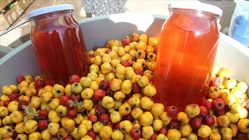 Sivas'ın Suşehri ilçesinde dağlardan toplanan alıç meyvesi, zahmetli bir yolculuğun ardından marmelat olarak sofralara lezzet katıyor.
