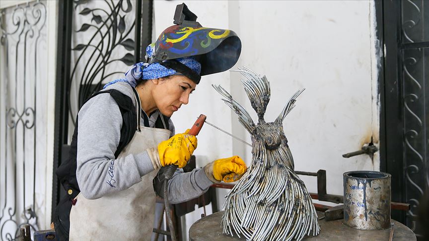 Gülcan Felekoğlu Akın, AA muhabirine yaptığı açıklamada, Erzurum'da 8 çocuklu bir ailede büyüdüğünü, üniversiteden mezun olduktan sonra moda tasarımı işiyle uğraştığını, demir işine başladığında çevresinden gelen tepkilere rağmen yılmadığını, eşinin de desteğiyle bugünlere geldiğini belirtti.