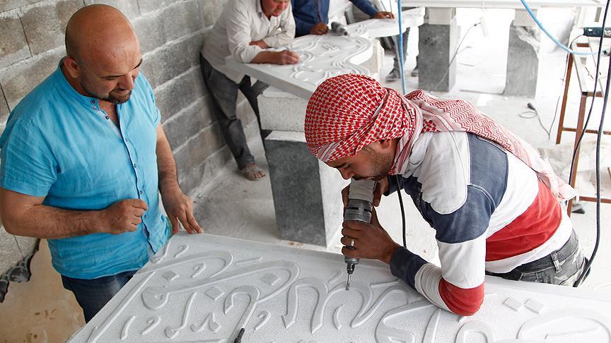 Abdulhamithan Camisi'nin hat işlemesini yapan Kahramanmaraş Sütçü İmam Üniversitesi İlahiyat Fakültesi öğretim görevlisi ve hattat Arif Yücel ile iş sayesinde bir araya gelen Suriyeli Sadık ve Emin, Mermerciler Sitesinde esnaf Mevlüt Göz'ün desteğiyle 3 kuşaktır yaptıkları işlerine geri döndü.