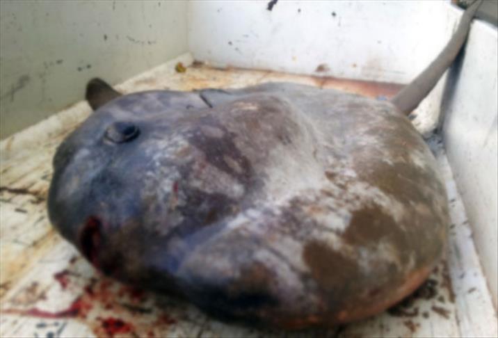 Mısırlı balıkçılar, küçük ağzı, geniş bedeni ve kalın derisiyle tanınan okyanus balığı çeşitlerinden 800 kilogramlık güneş balığını Akdeniz'de avladı.