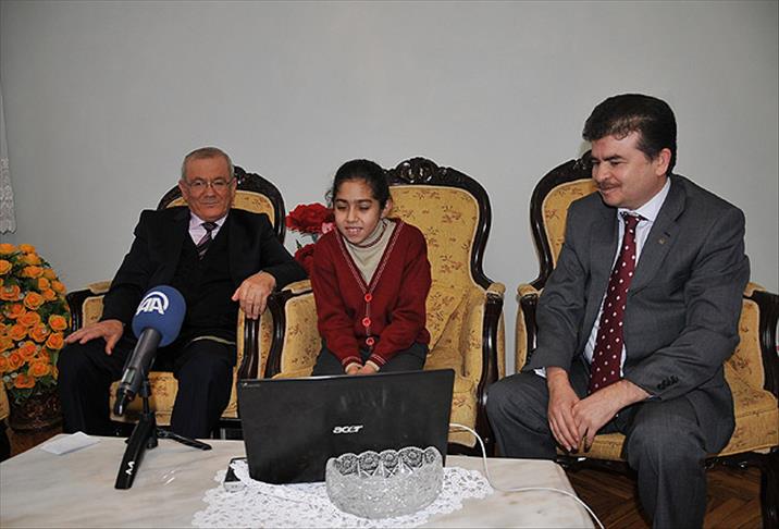 Anadolu Ajansı Editör Masası'na konuk olan Dışişleri Bakanı Ahmet Davutoğlu, memleketi Konya Taşkent'ten gerçekleştirilen video konferans bağlantısında manevi kızı Gülnisa Alkış (10) ve halasının oğlu Rıdvan Yüceaktaş'ı (67) karşısında buldu.