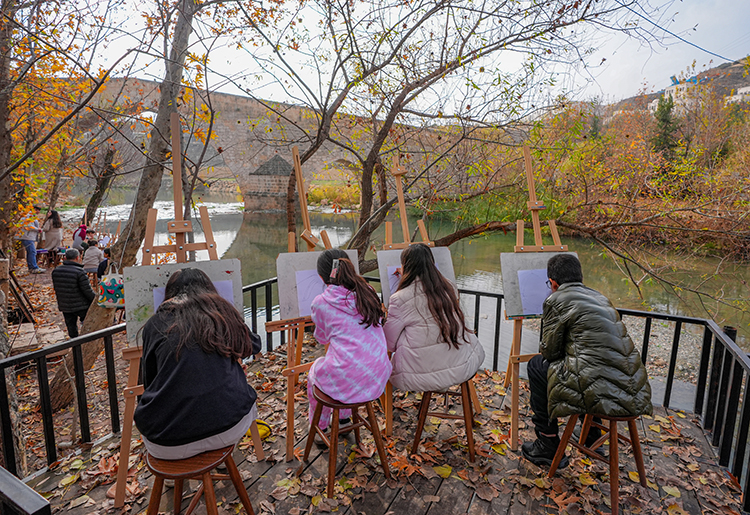 İlk, orta ve lise öğrencilerinden oluşan 30 kişilik grup, Sinek Çayı ve Haburman Köprüsü'nü resmetmek için buluştu. Öğrenciler, Sinek Çayı kıyısında tarihi köprüyü resmetti.