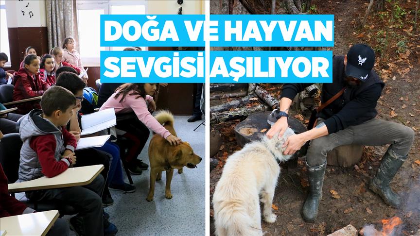Samsun'un Yakakent ilçesinde yaşayan doğa tutkunu müzik öğretmeni Cemil Ceylan'ın derslerine, köpeği "Aslan" da giriyor.