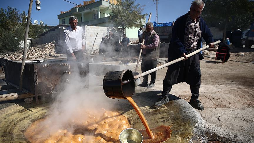 Gaziantep'in verimli topraklarında yakıcı güneşin tatlandırdığı ve yerede "dökülgen" olarak adlandırılan üzümler, Şehitkamil ilçesine bağlı Bedirköy'de vatandaşlar tarafından işlenerek pekmez, pestil, tarhana, muska ve cevizli sucuk haline getiriliyor.