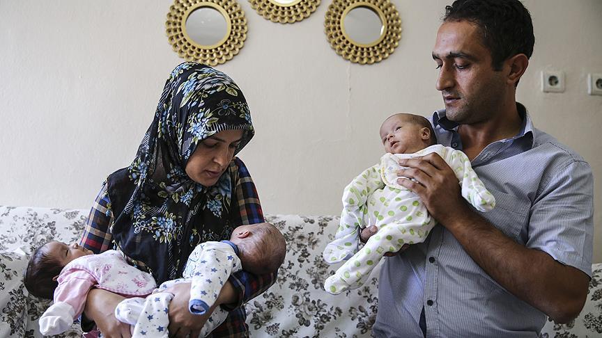 Dumlupınar Mahallesi'nde kiracısı oldukları tek odalı evde, semt pazarlarında günübirlik işler yapan 37 yaşındaki baba Emrullah Yağmur'un aylık ortalama 800 lira kazancı ile geçinmeye çalışan aile, temmuz ayında dördüzlerin dünyaya gelmesi ile sevinç ve hüznü bir arada yaşadı.
