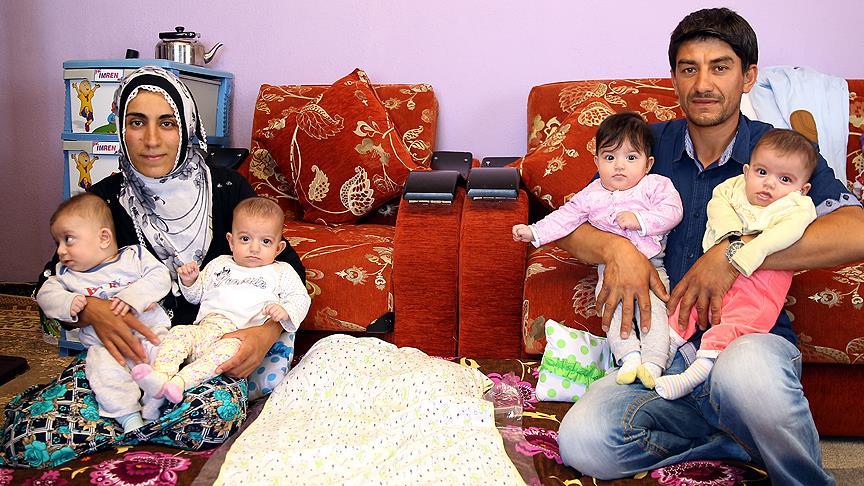 İnşaat işçisi Yücel Nam, AA muhabirine yaşadığı mutluluğu anlatırken, eşiyle dört yıl boyunca çocuk sahibi olmak istediklerini, Allah'ın bu isteklerini Demir, Derya, Defne ve Defin adını koydukları dört bebek vererek taçlandırdığını söyledi.
