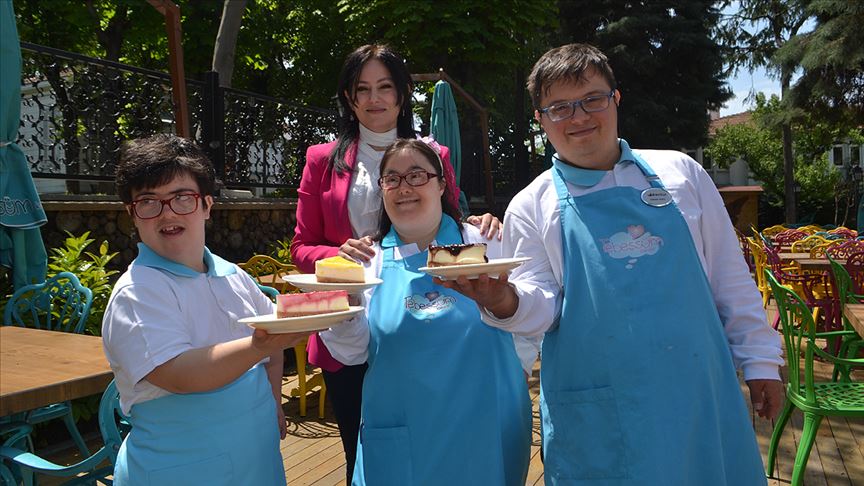 31 yaşındaki down sendromlu Evren Çakır da spor yapmak, yüzmek ve sevdikleriyle vakit geçirerek seyahat etmeyi çok sevdiğini belirterek, "Çok mutluyum. 3 yıldır servis hizmeti veriyorum. Hem çalışıyorum hem de para kazanıyorum. Burası güzel bir mekan. Ekip olarak beraber çalışıyoruz. Eğitim de alıyor ve öğreniyorum." diye konuştu.