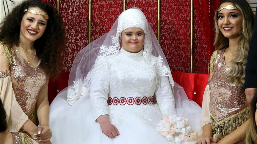 Ankara'nın Keçiören ilçesinde 23 yaşındaki down sendromlu Rabia Süer'in gelinlik giyme hayali, temsili düğünle gerçek oldu.