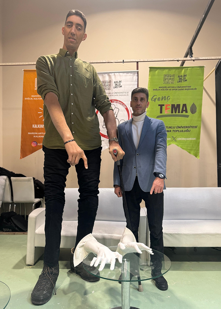 "Dünyanın en uzun adamı" Sultan Kösen'in ellerinin kalıbı çıkartıldı